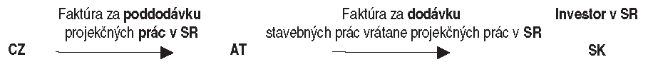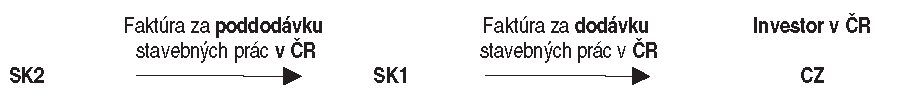 Slovenský platiteľ „SK2“ uzatvoril s českým odberateľom „CZ“ – hlavným dodávateľom stavby v SR – zmluvu o dielo na stavebné práce na nehnuteľnosti nachádzajúcej sa v tuzemsku. Český HDSP „CZ“ uzatvoril zmluvu o dielo so slovenským investorom „SK1“.