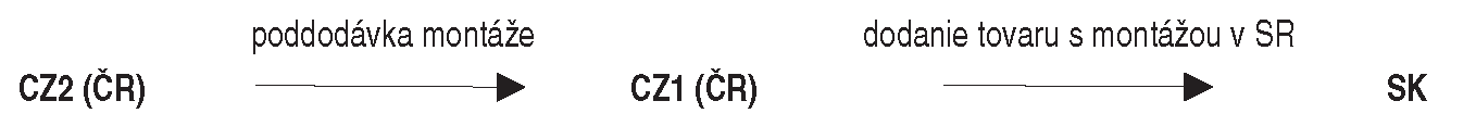 Prvý zmluvný vzťah je medzi odberateľom – platiteľom z ČR „CZ“ – a dodávateľom z tuzemska – platiteľom „SK1“. Miesto dodania je podľa § 7 ods. 3 českého zákona o DPH a § 13 ods. 1 písm. b) slovenského zákona o DPH tam, kde sa tovar montuje, čo je v našom prípade ČR.